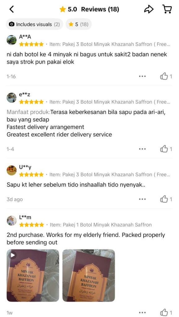Lebih 25,983 Pengguna Minyak Khazanah Saffron Berikan Rating 5 Sebagai Tanda Berpuas Hati